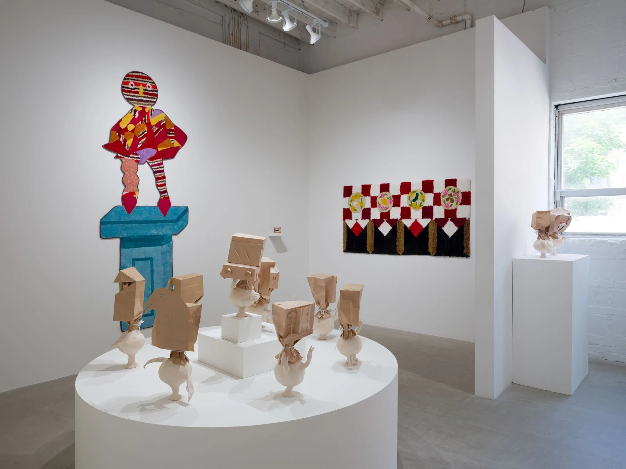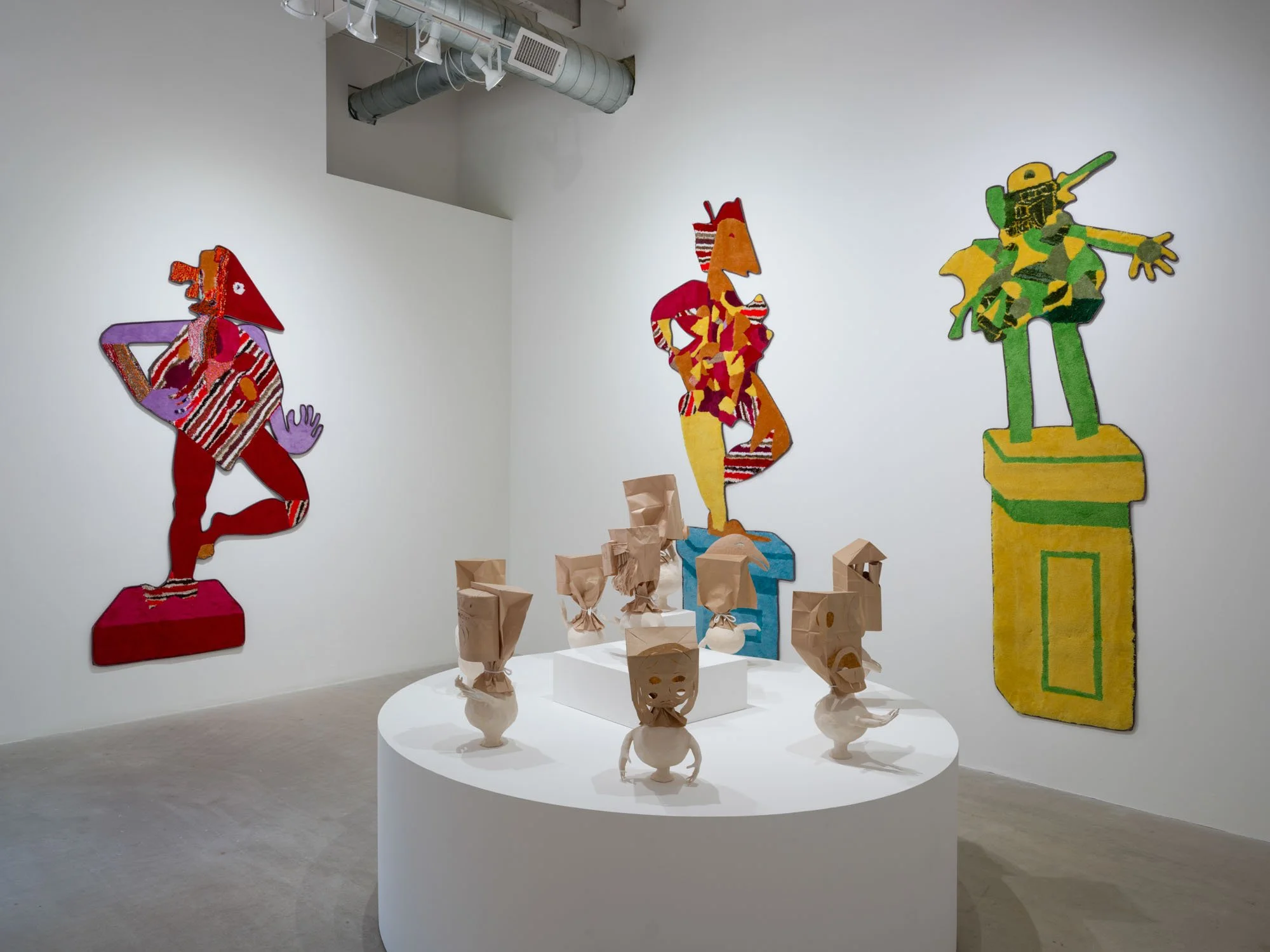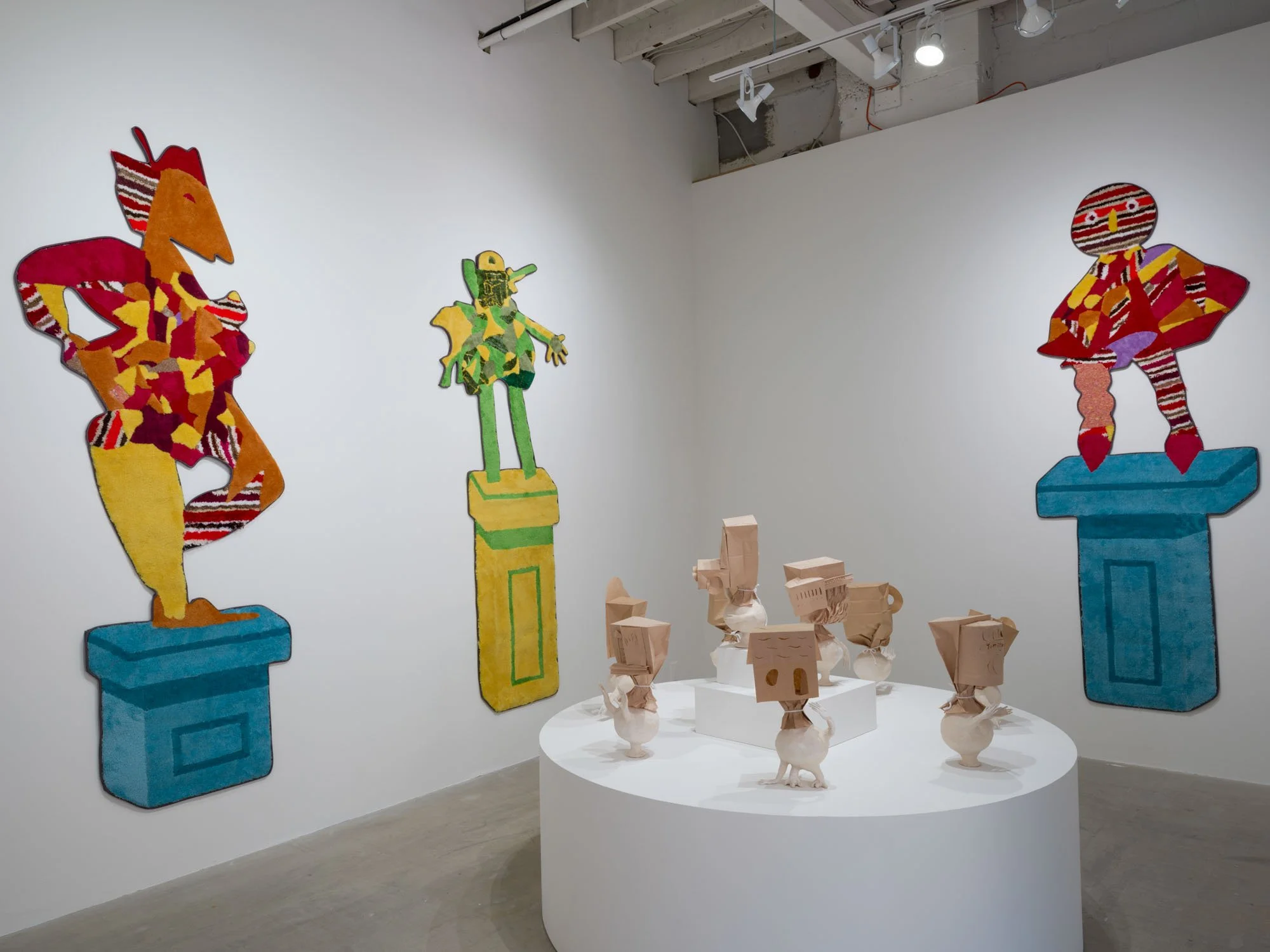 Heather Rule gets this all wrong by using combinations of ceramic and paper materials to create embodied forms that appear ephemeral and changeable. With the impermanent and familiar materiality of brown paper, the heads of these sculptures—including depictions of dentures, a rudimentary house form, and a pack of Du Maurier Lights, among others—evoke the fragmentary precision of certain persistent memories, equally vulnerable to change over time. Arms extend from their more corporeal ceramic pedestals, sometimes reaching out or gesturing to one another as if they are communicating, or at least keeping each other company. Together they form a collection of images in conversation, drawing out connections between seemingly disparate parts. There is a sort of tenderness and care to these objects. Now I am thinking, feeling, reflecting. No, this is not how this is supposed to go.